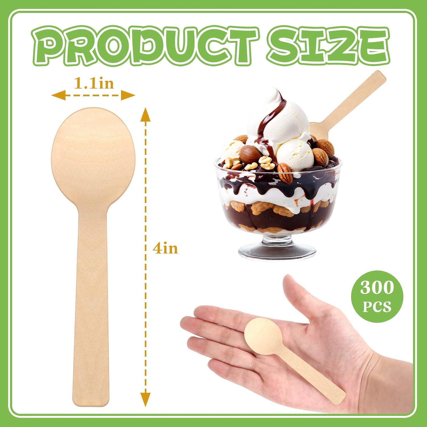 4-Inch Mini Wooden Spoons 300pcs – Compostable Birchwood Disposable Dessert & Sampling Spoons, Eco-friendly for Parties Ice Cream