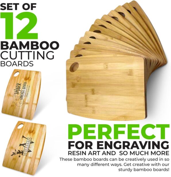Bulk Round Plain Bamboo Cutting Board with Handle (Set of 12) | Use For Customized, Personalized Engraving | Wholesale Premium Blank Bamboo Board (Rectangular 12″ X 9″)