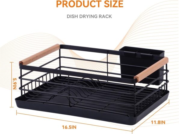 - Save Space: The dish rack offers wide space for drying dishes, bowls, glassware and other kitchen utensil, without taking up too much space on your countertop. Size: 16.5″L x 11.8″W x 5.9″H.