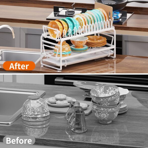 • TOOL-FREE INSTALLATION: No Tools Required. Our Dish Drying Rack Is Ready To Use When It Arrives, The Dish Drying Rack With Drain Board And Wash It With Water Is Also Easy. If You Are Not Satisfied With This Dish Drying Organizer And Draining Board Set, Please Contact Us For a Full Refund.