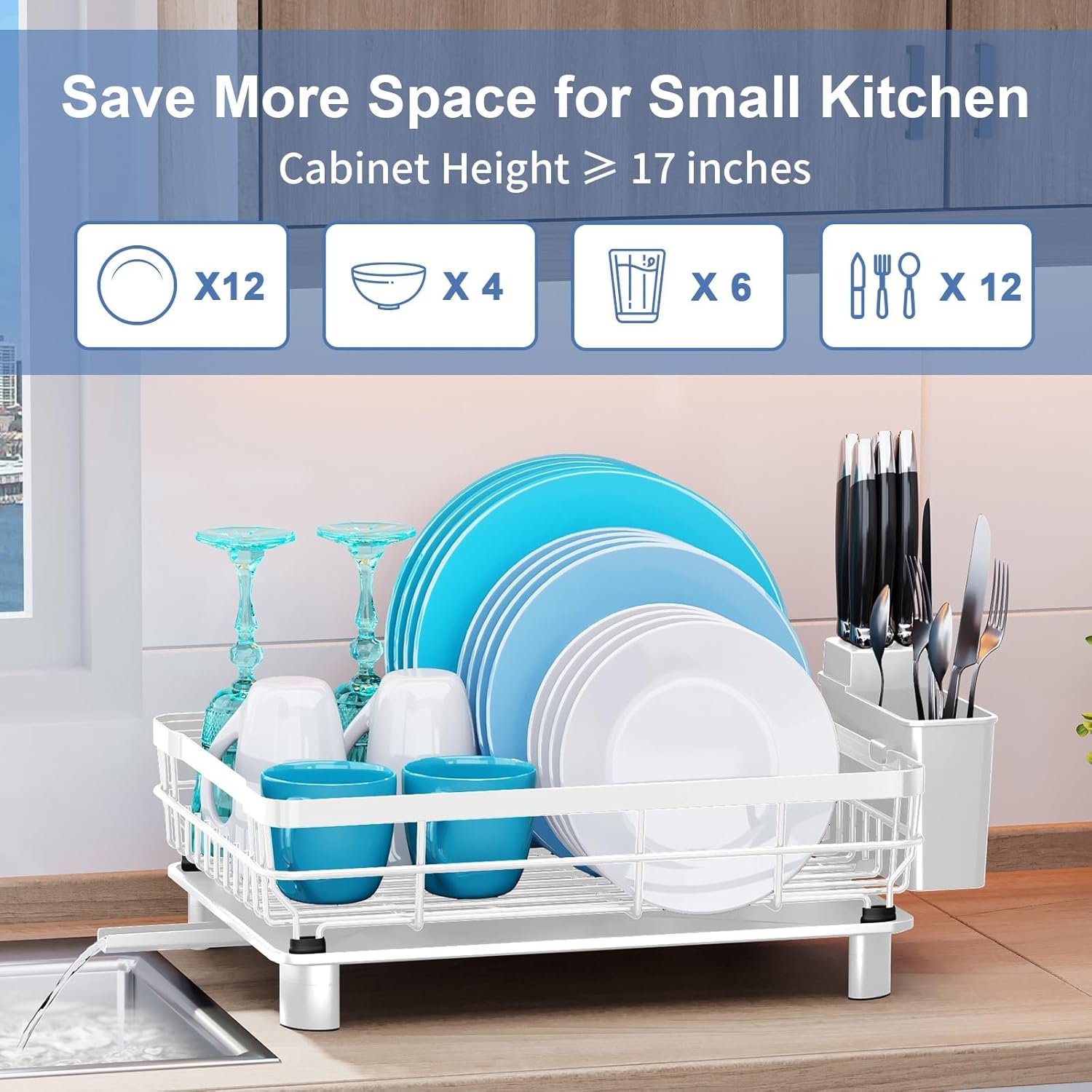 DishRack-DurableDishDryingforKitchenCounter,DishDrainerswithDrainboard,KitchenOrganizationandStorageforNewApartment(White,metal)